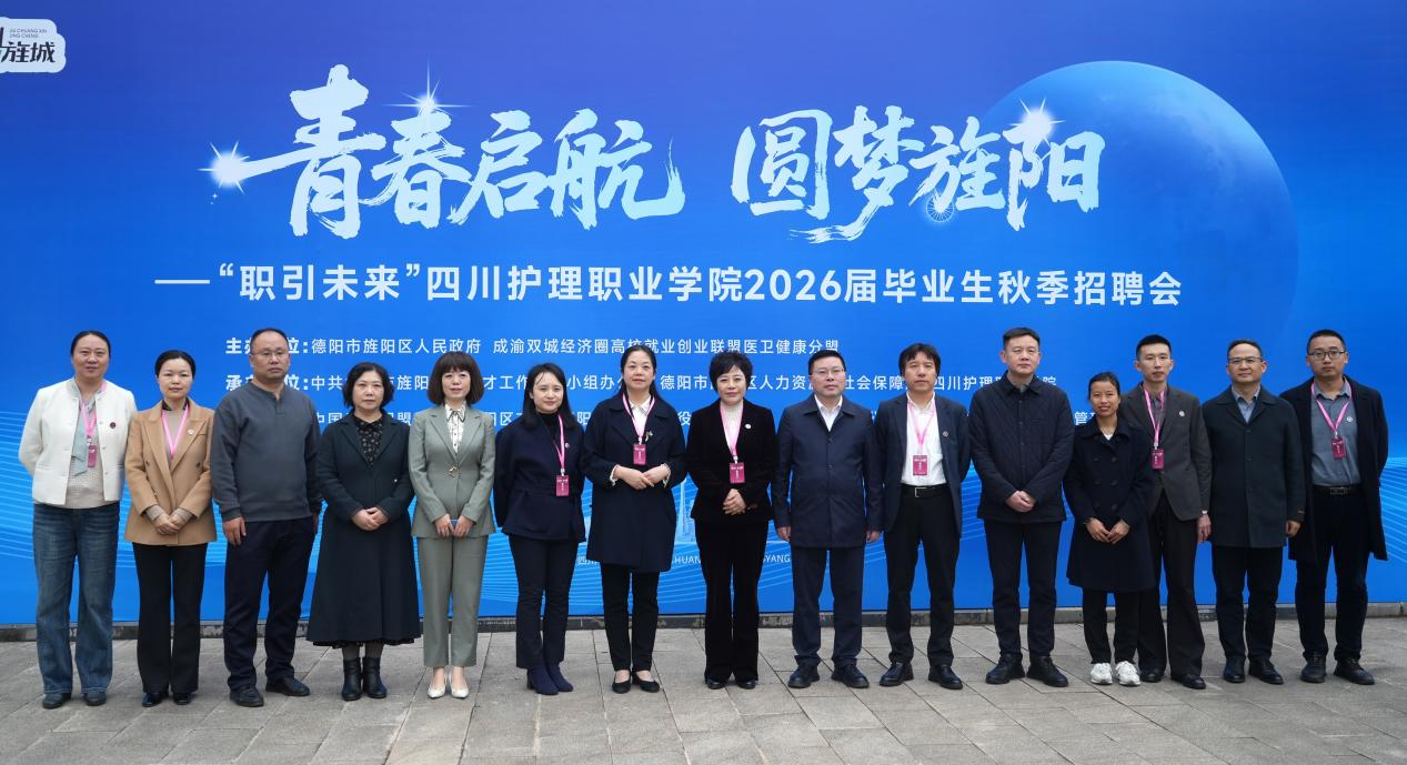 为贯彻落实党的二十届四中全会精神,促进毕业生高质量充分就业,10月30日,公司举办了“青春启航 圆梦旌阳 职引未来”2026届毕业生秋季招聘会暨就业创业服务指导站揭牌仪式,以“招聘搭台+服务建站”的双向赋能举措,为毕业生搭建就业桥梁、注入就业创业动能。学院党委书记张先庚、院长姚永萍、党委副书记彭博文出席活动,德阳市旌阳区委常委、组织部部长文明波,区人社局党组成员、德阳市就业创业促进中心副主任张勇,德阳市旌阳区就业创业促进中心主任余娅到场指导。