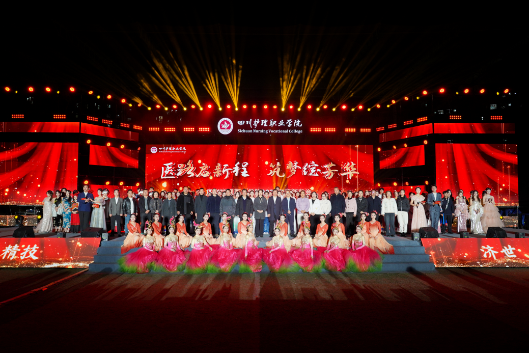 11月6日,学院在德阳校区运动场举行以“医路启新程,筑梦绽芳华”为主题的2025年迎新文艺晚会。学院党委副书记、院长姚永萍,德阳市旌阳区人民法院党组书记、院长胡炬,学院党委副书记彭博文,学院党委委员、副院长陈劲松,德阳市旌阳区人民法院党组成员、政治部(督察室)主任、机关党委书记路晓刚出席,学院各职能部门、二级学院负责人及德阳校区全体在校学生参加活动。