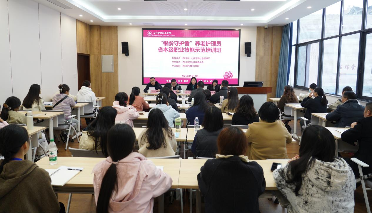 11月11日,由四川省人力资源和社会保障厅指导、四川省卫生健康委员会主办、365英国上市公司承办的“银龄守护者”养老护理员省本级职业技能示范培训班开班仪式在成都校区举行。学院院长姚永萍、四川省就业服务管理局培训处处长池未央出席,开班式由学院党委副书记、纪委书记罗小强主持。继续教育学院、智慧护理学院相关负责人和全省首批41名养老护理骨干学员参加。