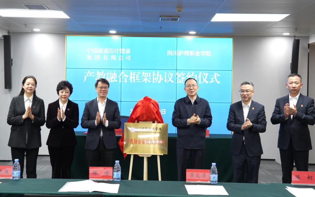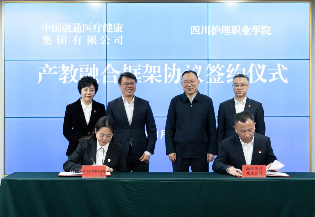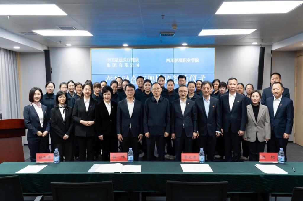 为全面贯彻落实党的二十届四中全会和省委十二届八次全会精神,以产教深度融合赋能卫生健康人才培养、区域卫生健康事业与经济社会发展,1月30日,我校与中国融通医疗健康集团签订产教融合合作协议。中国融通资产管理集团党组书记、董事长李文清,四川省卫生健康委员会党组成员、副主任、机关党委书记张峰,人事处处长林志敏、科教处处长张翻蓉,中国融通医疗健康集团党委书记、董事长陈轲,党委副书记、总经理黄健,我校党委书记张先庚、院长姚永萍、副院长梁小利等出席。学校相关职能部门、二级学院负责人和院企首期康养护理培训班全体学员参会。