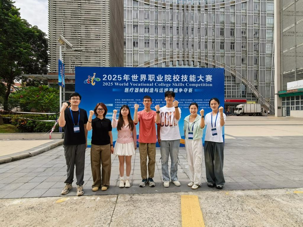 8月24日至27日,2025年世界职业院校技能大赛总决赛争夺赛医疗器械制造与运维赛道在广东广州举行。比赛吸引了来自全国51支参赛队、约500名师生同场竞技。学院2024级智能医疗装备技术专业学生周钰、肖湧淋、黄紫怡、左天佑凭借扎实的专业技能、出色的职业素养和稳定的现场发挥,荣获银奖,实现学院智能医疗装备技术专业国家级一类竞赛获奖“零的突破”。