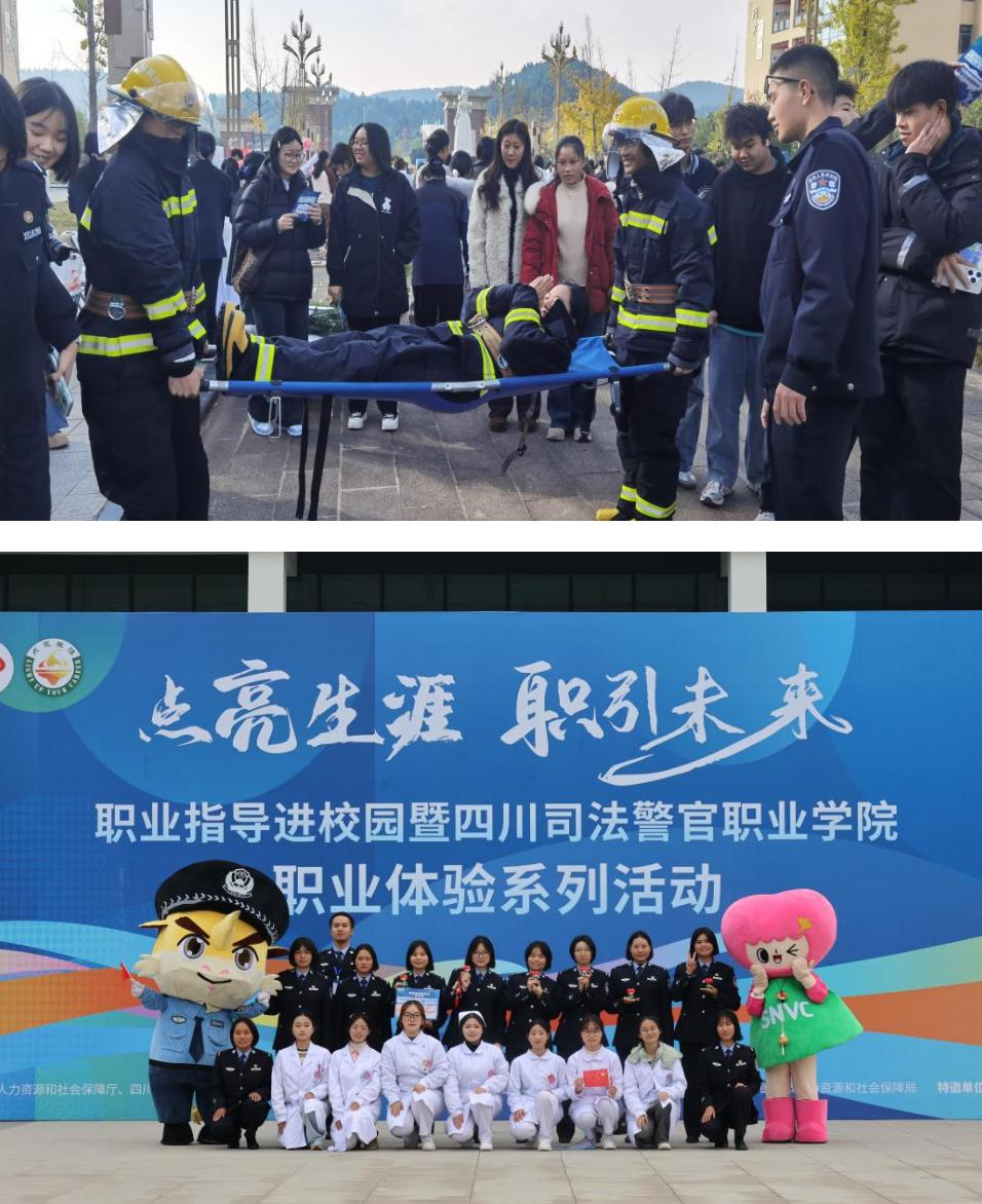 本次活动的一大亮点是跨校双向交流的深度联动。学院特别邀请四川司法警官学院学生团队亲临现场,带来消防防护装备实操演示、应急救援技能讲解等专业展示,让学子们近距离了解消防救援领域的职业规范与专业要求。作为交流的重要组成部分,学院护理、中药学专业学生团队也前往四川司法警官学院开展专业展示,通过护理实操技能演示、中药辨识与养生知识分享等内容,促进两校专业优势互补。双方学子围绕职业技能培养、职业生涯规划等话题展开热烈探讨,为校际资源共享、协同育人搭建了坚实桥梁。