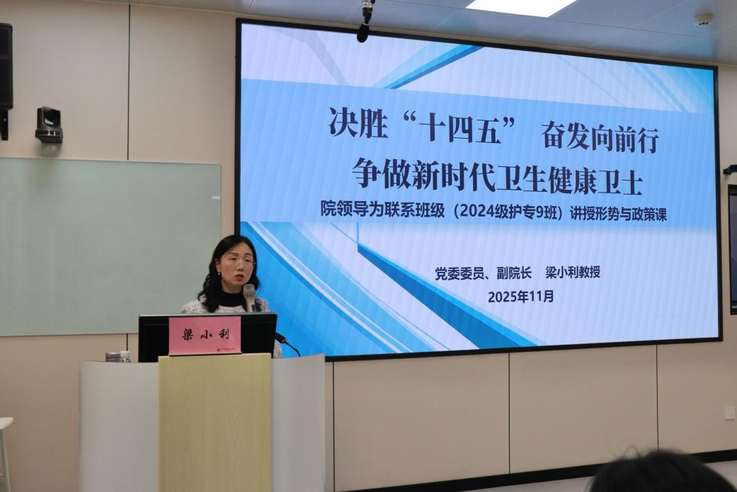 11月25日,学院副院长梁小利教授深入联系班级——2024级护理大专9班,为同学们带来了一堂内容丰富、指导性强的形势与政策课。