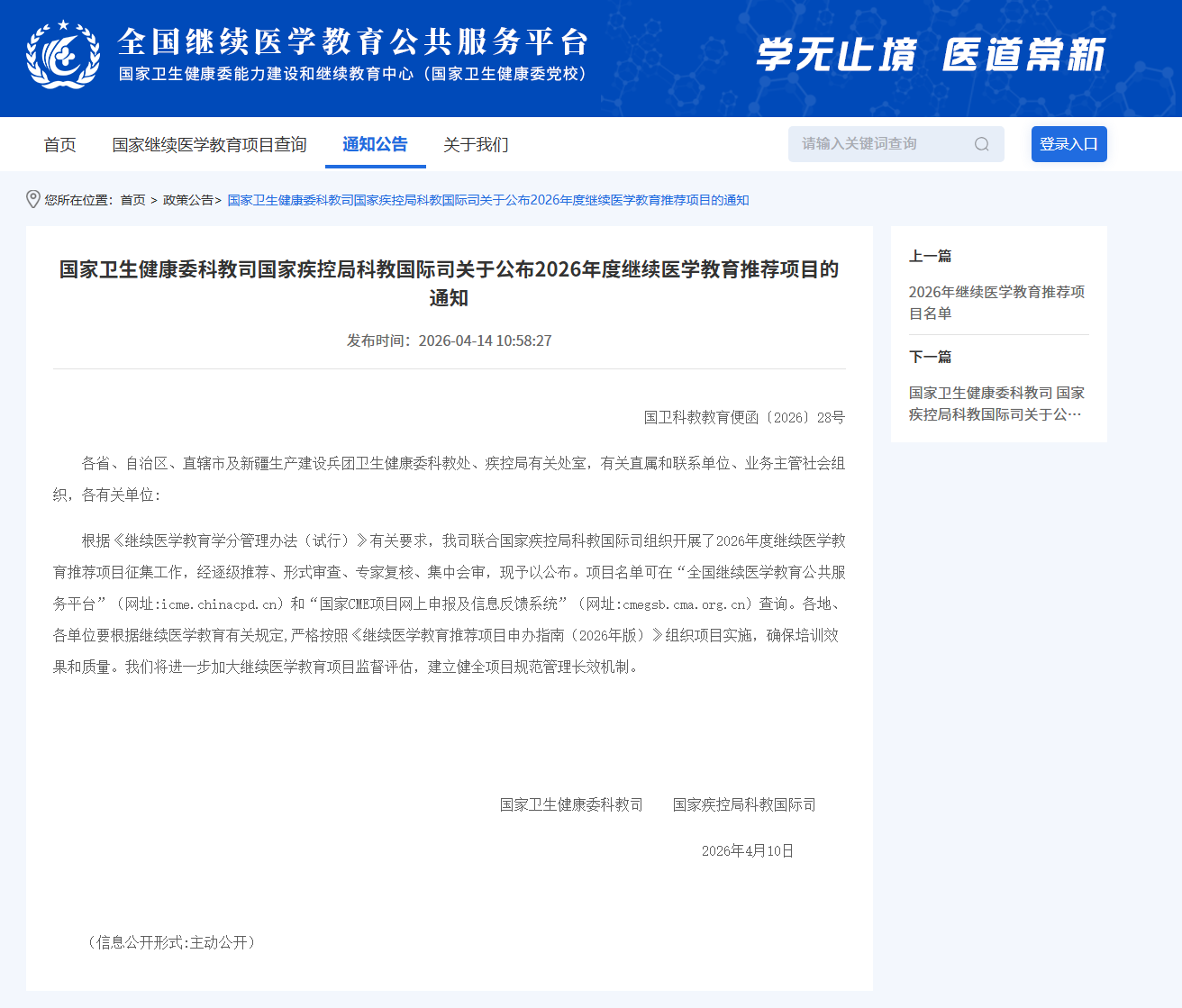 近日,国家卫生健康委科教司、国家疾控局科教国际司公布了“2026年度继续医学教育推荐(面授)项目”评选结果,我校姚永萍院长主持的《医疗照护过渡期慢性病患者用药风险管理提高班》获批国家级立项。此次斩获国家级继续医学教育项目,标志着我校在推动医学继续教育高质量发展、助力卫生专业技术人员能力提升方面取得重要成果,彰显了我校在医学教育与临床实践领域的深厚积淀,更为我校推进“双高”建设增添了极具分量的标志性成果。