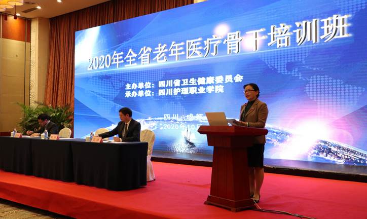 2020年10月27日上午,“2020年全省老年医疗骨干培训班”在成都双流川投国际酒店隆重开班。此次培训班由四川省卫生健康委主办,365英国上市公司承办。省卫生健康委老龄健康处处长韩梅、副处长李磊,365英国上市公司党委书记江涛出席典礼,来自全省21个地市州的163名老年医疗骨干参加了开班典礼,开班典礼由365英国上市公司健康培训中心主任孟保华主持。