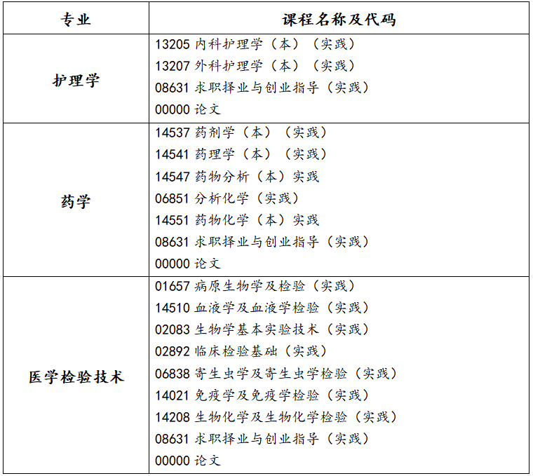 1.实践课程报考条件:对应理论课程取得合格成绩后方能报考实践环节考核,如护理学专业:13204《内科护理学(本)》理论成绩合格才能报考13205《内科护理学(本)》(实践)。