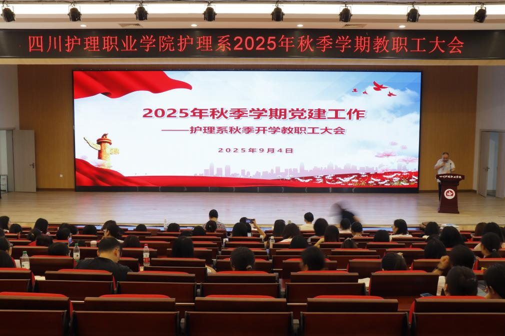 9月4日,护理系2025年秋季学期教职工大会在德阳校区演艺厅举行,全体教职工参加会议。会议由护理系主任邓小利主持。