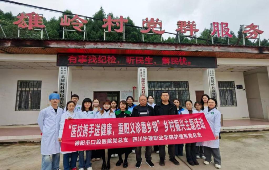 为弘扬尊老爱老传统美德,推动基层党建与社会服务深度融合,学院护理系党总支联合德阳市口腔医院党总支,走进党建共建单位——德阳市旌阳区和新镇英雄岭村,开展“医校携手送健康 重阳义诊惠乡邻”健康慰问活动,为村内老人送上健康服务与节日关怀。
