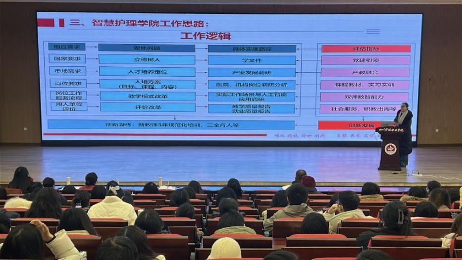寒假伊始,智慧护理学院召开迎接办学能力评价专项工作会,全体教职工参会,智慧护理学院院长邓小利主持会议。