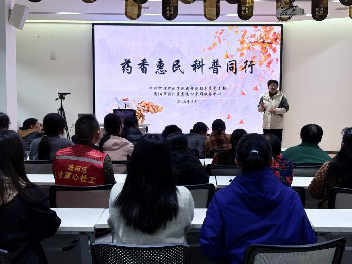 为落实四川省第十三届科普活动月工作部署,3月12日,我校药学院党总支辅导员支部前往德阳市旌阳区东湖街道高槐村开展“药香惠民,科普同行”主题党日活动。支部党员与中医药文化宣讲队成员通过药用植物科普宣讲、中医药文化体验等形式,强化党建引领,践行高校服务社会使命与担当。