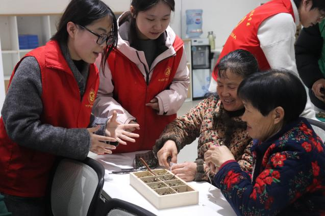 在中医药文化体验环节,中药拓印与香囊制作活动同步开展,村民们兴致盎然,纷纷动手尝试。在志愿者的耐心指导下,大家认真选取药用植物、精心拓印纹样;或是亲手填充药材、缝制香囊,在动手实践中感受传统中医药文化的独特魅力。此次活动通过科普实践,探索“党建引领、统战赋能、科普惠民”工作机制。下一步,辅导员党支部将持续推动中医药文化走进基层、服务群众,切实提升公众健康素养,为地方文化振兴与社会发展贡献高校智慧与力量。