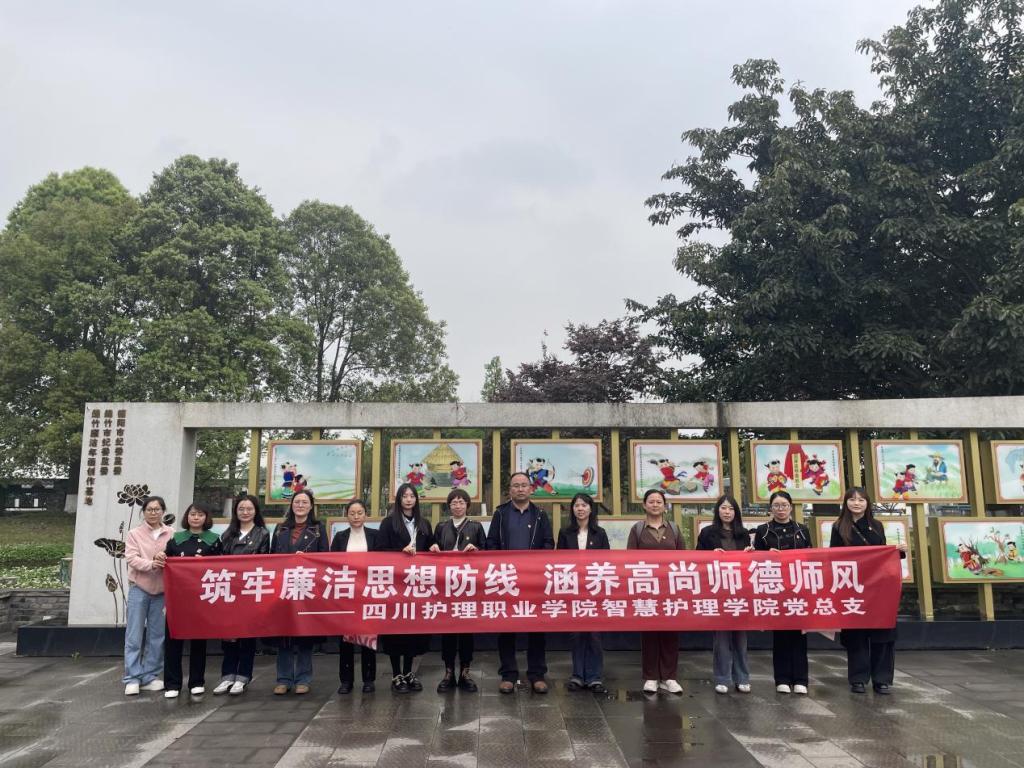 为深入开展树立和践行正确政绩观学习教育,推动党风廉政建设与师德师风建设融合共促,近日,智慧护理学院党总支书记黄鸷带领下属6个党支部党员代表,赴绵竹廉洁年画创作基地开展“筑牢廉洁思想防线 涵养高尚师德师风”主题党日活动,以沉浸式教育推动廉洁教育走深走实。